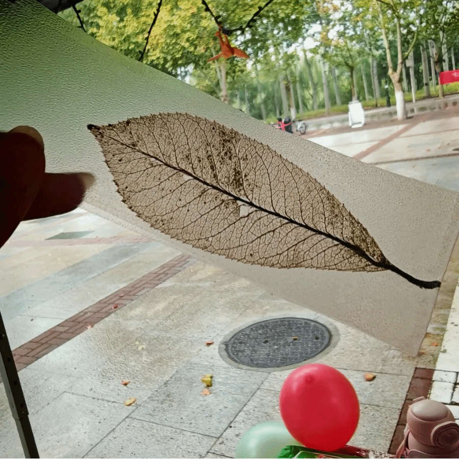 与此同时,树叶书签活动同样人气满满,同学们收集了大小在 10x10cm以内的树叶,带到活动地点进行封膜收藏。一份小小的树叶书签不仅仅是对秋天的珍贵留念,更是与大自然亲密接触的美好见证。