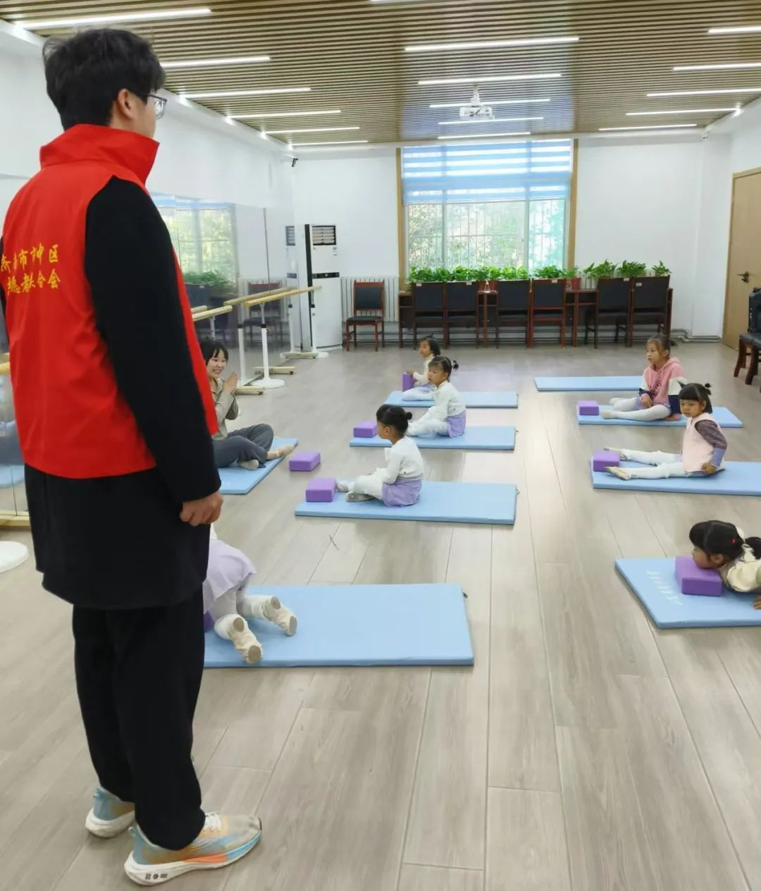 在卧龙社区开展的少年宫特色课程过程中,志愿者们协助老师开展课程、维护课堂秩序。课前,志愿者帮助老师快速布置课堂,准备课堂所用的器材。孩子们认真练习时的模样、用心创作的画作、跳绳时昂扬向上的姿态以及那如同花朵的笑脸,都让志愿者们感到不虚此行。
