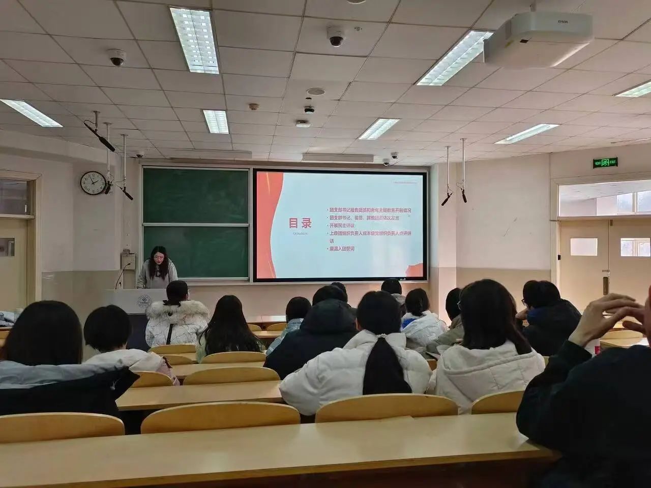 此活动分为学院团委和团支部两部分。在学院团委活动中,开展了“庆祝中华人民共和国成立75周年 ”主题团课讲座。主讲人吴钰玮老师紧扣新中国成立75周年以来的伟大历程和璀璨成就,强调了坚定理想信念的重要性,并带领同学们系统地回顾了新中国成立以来诸多历史性的关键节点,让团员进一步了解了国家的发展格局。吴老师鼓励团员们以家国情怀为出发点,深入剖析自身发展潜力,激励学生接过历史接力棒,为实现中华民族伟大复兴奉献青春才智。
