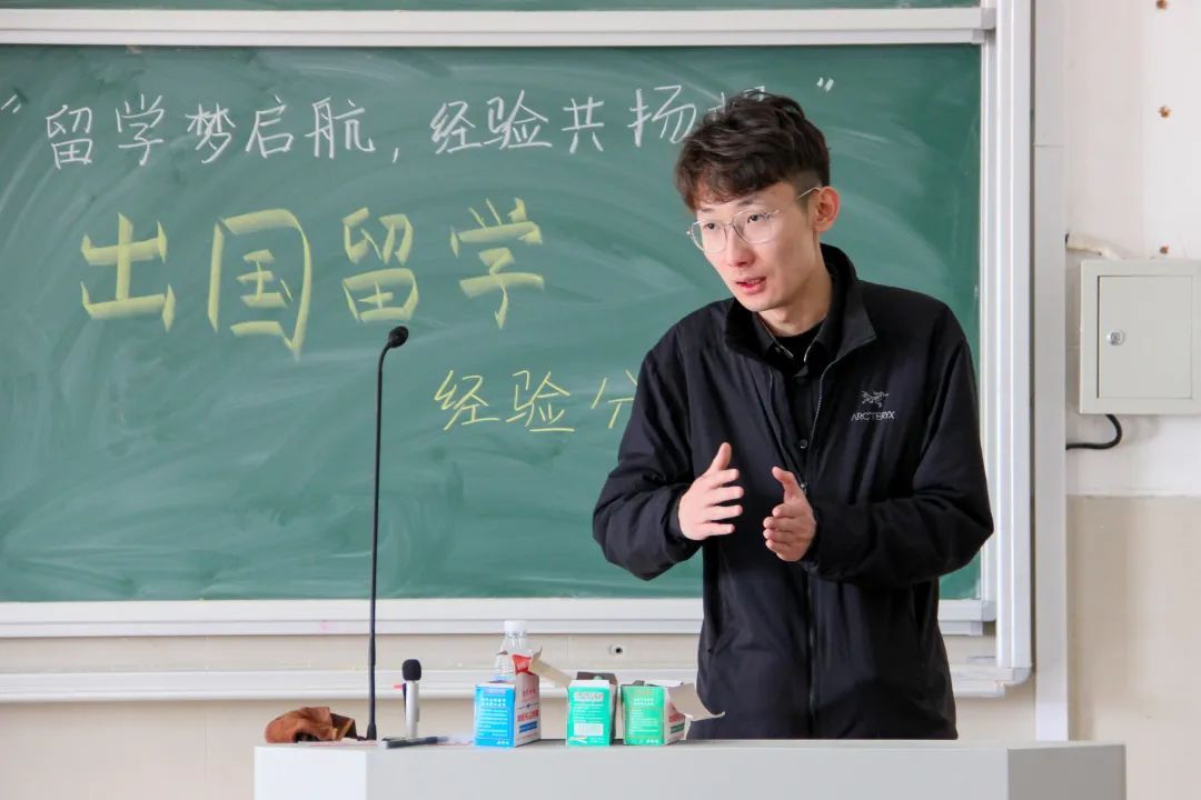 举办了“留学梦启航,经验共扬帆”出国留学经验分享会。活动邀请学院2023届毕业生、现就读于英国利兹大学的李一夫同学进行分享。