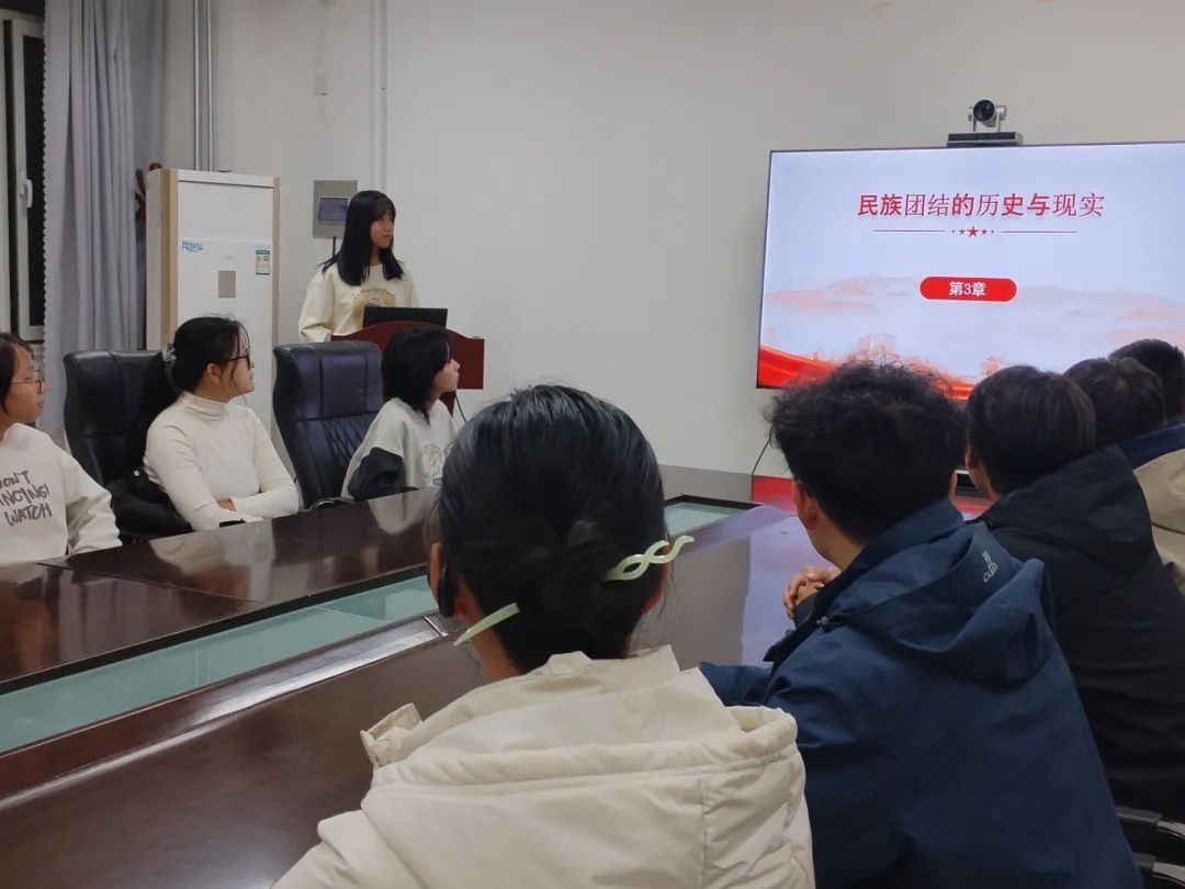 近期成功举办了“石榴籽一家亲,共筑民族团结情”主题活动,本次主题活动是学院第三届"青马工程"大学生骨干培训暨主题团课之一。活动由团务部副部长张锦泽担任主讲。