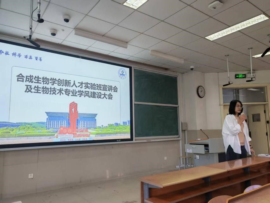 举办合成生物学创新人才实验班(以下简称“创新班”)宣讲会暨生物技术专业学风建设大会。学院教工第二党支部成员、生物技术专业相关负责教师,2024级全体学生参加活动。活动由2024级本科生辅导员冯昕主持。