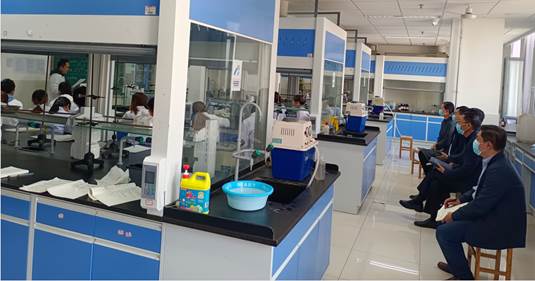 “关于开展2021年‘教学质量月’活动的通知”要求和学院“教学质量月”活动安排,11月4日下午以及11日下午,学院党委书记朱帮全、院长何文兴、副书记孙翔玲、副院长李强、秦晓春、教学管理办公室副主任褚海培在特教楼本科实验室,分别对江成世、朱孔凯两位老师的《药物化学实验》课程,以及李玉梅、杨新超两位老师的《蛋白质与酶工程实验》课程进行听课、巡课。