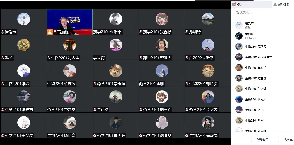 药学2101班、生物2201班学生讲授党的二十大精神专题《形式与政策》课。