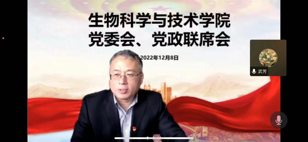 黄加栋副校长首先向学院奋战在疫情防控一线的教职员工表示感谢,对会议点评指导时认为本次学院党委会和党政联席会准备充分、程序规范、发言踊跃、效果良好。就进一步做好党建和学院工作提出三点意见:一是提高政治站位。学习宣传贯彻党的二十大精神是当前和今后一个时期的首要政治任务,要把党建工作与学习宣传贯彻习近平新时代中国特色社会主义思想和党的二十大精神紧密结合,要坚持“第一议题”制度,强化议事规则和决策程序的执行力。二是注重工作实效。党建工作要与学院人才培养、科学研究、社会服务等具体业务工作相结合,突出立德树人根本任务,聚焦学校第四次党代会发展思路和战略部署,求真务实,做到“抓党建、促工作、见实效”,学院领导班子要落实“五个始终坚持”,做到“五个表率”,增强学院的向心力和凝聚力。三是统筹发展安全。在锚定学校和学院高质量发展目标任务、激发全院上下干事创业精气神的同时,要兼顾意识形态安全、防疫安全、实验室安全等安全稳定工作,既要落实好学院年度重点工作,又要承担“双责任”、确保“双平安”,打造“团结、担当、务实、廉洁”的学院领导班子。