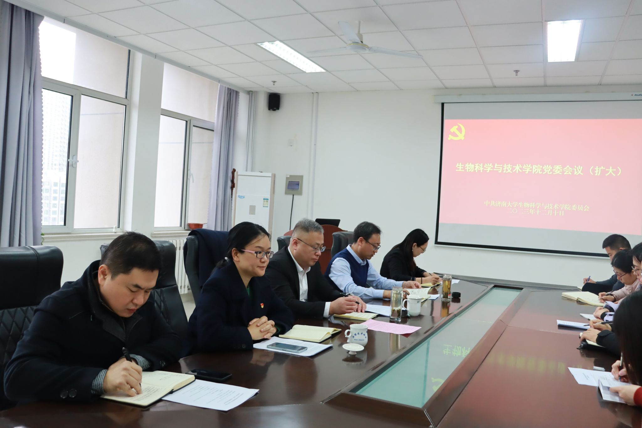 党委理论中心组的集体学习组织周密、内容丰富、主题突出、学习成效显著,中心组成员学习体会发言政治站位高、大局观念强、紧密结合实际工作,是一次高质量的政治理论学习;党委扩大会、党政联席会准备充分、程序规范、效果良好,充分发挥了政治把关和学院议事决策的作用。最后,黄加栋副校长就学院高质量建设和发展提出了建议。