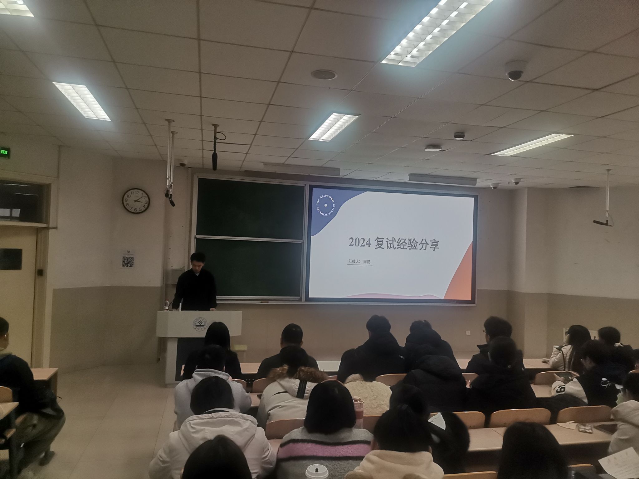 会议第一阶段为考研复试指导。学院副院长李强就考研复试相关政策、内容及形式、注意事项及常见问题进行解读,并结合往年录取学生情况,鼓励学生要全面了解报考院校专业情况,摆正心态,积极应对各种挑战。毕业班辅导员阮斌详细讲解了毕业生就业去向种类、签约流程和注意事项、就业安全等,并结合近三年来学院毕业生考研情况对同学们进行考研复试、调剂指导;学院研究生代表国威、王富友分别从复试阶段笔试面试准备、考研调剂经验等方面进行分享,帮助考研学增强自信心,更好地备战复试,提高复习效率、调剂成功率。