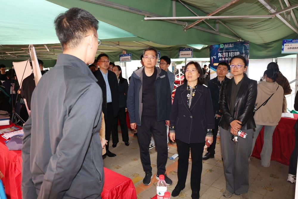 王霞与前来参加招聘会的地方政府相关部门负责人、用人单位、校友企业代表及求职学生进行深入交流,了解企业岗位需求情况及毕业生求职进展。她向地方政府及用人单位对学校毕业生就业工作的关心与支持表示感谢,并征求对学校人才培养和就业工作的意见建议,同时鼓励毕业生抓住有利时机积极就业,成就青春梦想。
