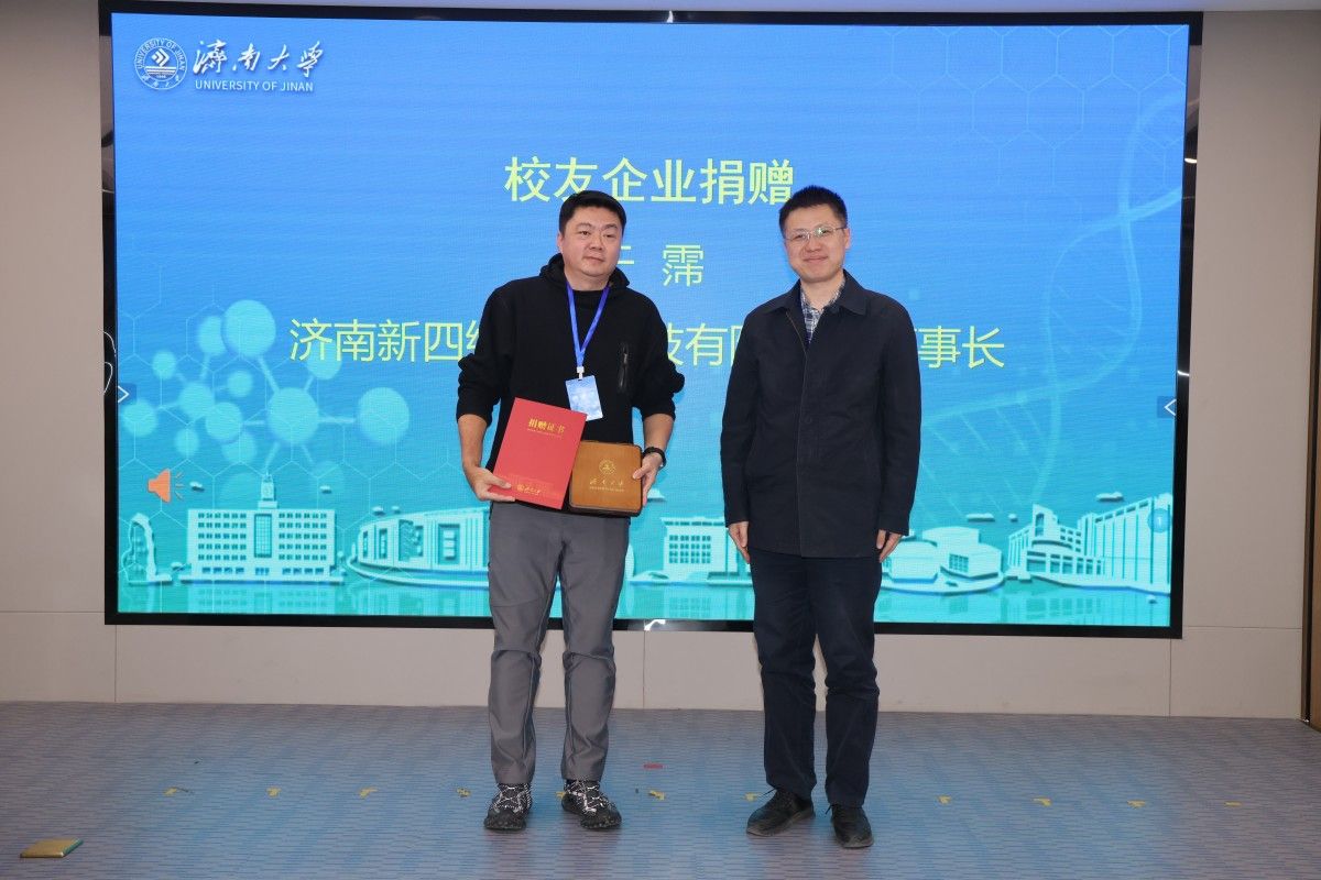 实践教学基地揭牌仪式;与济南新四维生物科技有限公司举行校友企业捐赠仪式;为学院创新创业校友导师颁发聘书。